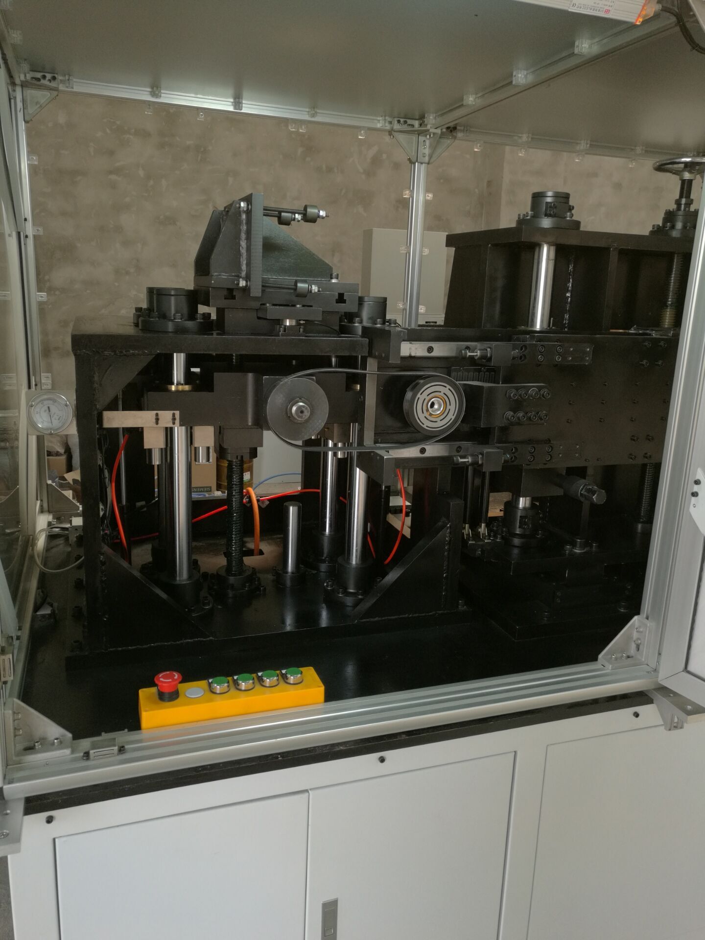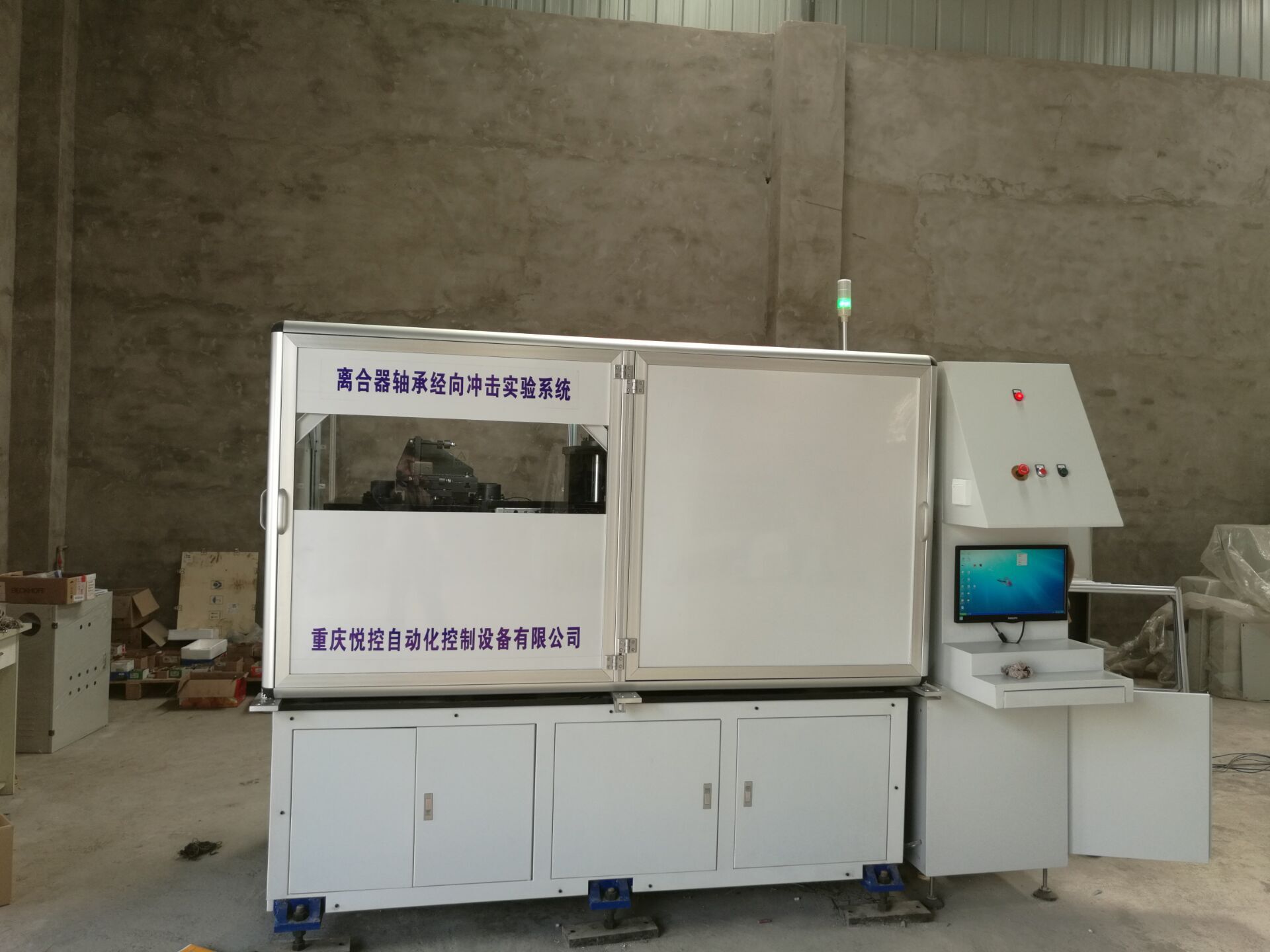 簡(jiǎn)介:該系統(tǒng)要求對(duì)汽車空調(diào)離合器軸承徑向施加0-6000N的力,響應(yīng)時(shí)間為1毫秒,測(cè)試次數(shù)以秒為單位,最長(zhǎng)要求60萬(wàn)次為一個(gè)測(cè)試周期,系統(tǒng)能夠?qū)崟r(shí)記錄測(cè)試時(shí)施加的力及轉(zhuǎn)速。系統(tǒng)控制部分全套采用德國(guó)倍福品牌,水冷直線伺服系統(tǒng)作為沖擊部分,實(shí)現(xiàn)毫秒及的響應(yīng)速度,倍福工控機(jī)為系統(tǒng)的計(jì)算核心。